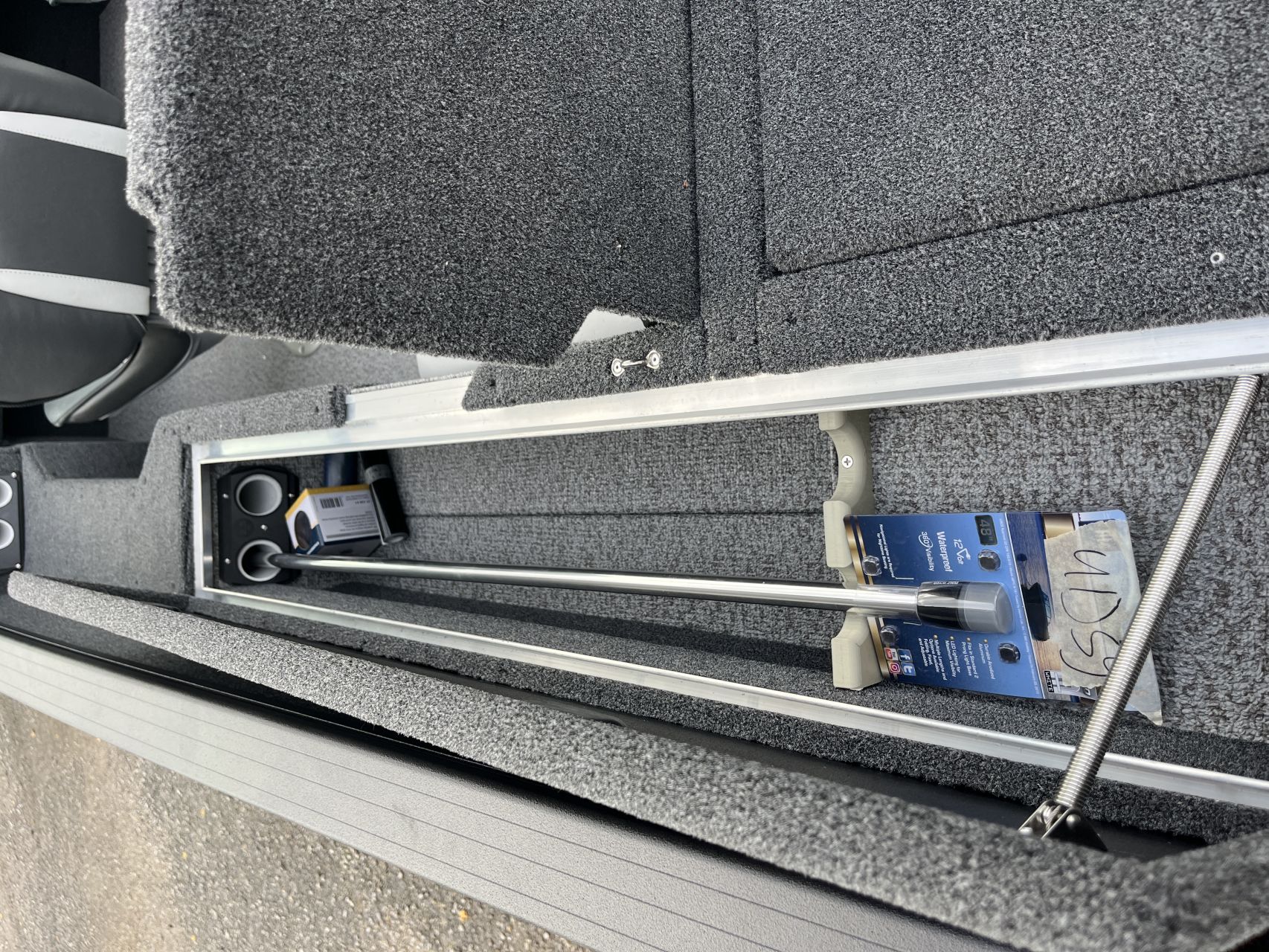 - Vnútorné dosky a zadná paluba pokryté námorným kobercom