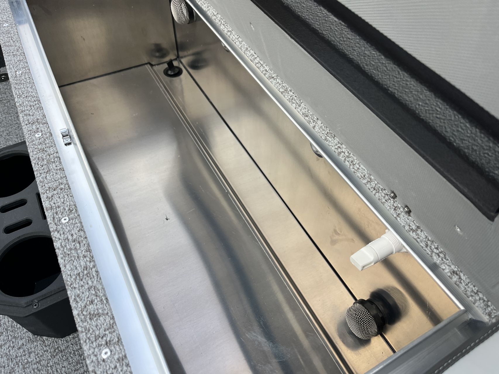 - Dvojitý držiak na poháre s úložným priestorom na rybársky nôž a kliešte;