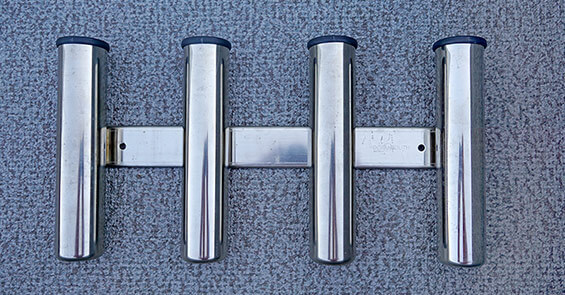 Rozsdamentes bottartó 3 bothoz, csalihorgok, fogó és kés tartóval